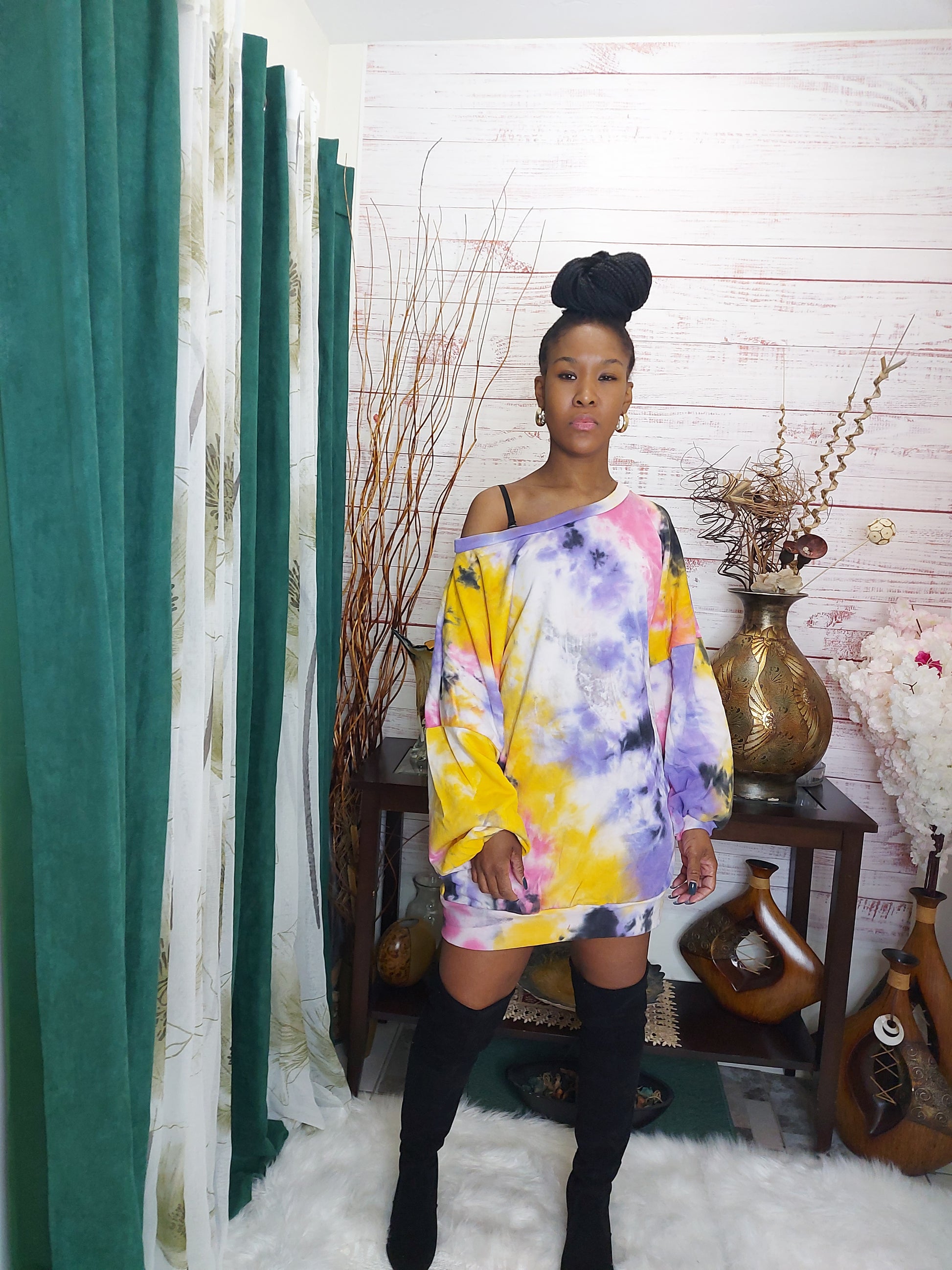 Over Sized Long Sleeve Some Stretch, True To Size. 87% polyester 9% Rayon 4% Spandex